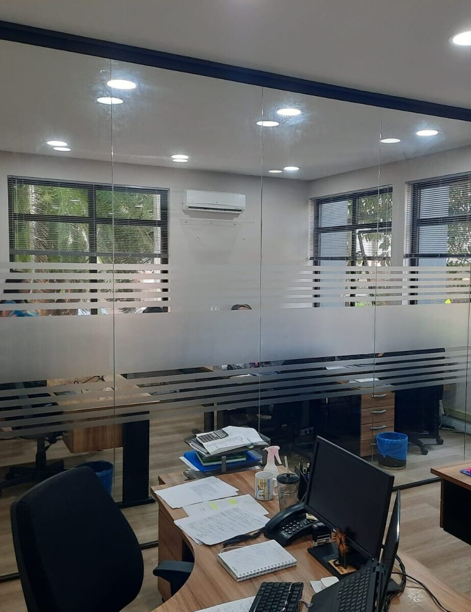 Valorize a estética e a eficiência energética de sua empresa. Películas ideais para controle solar, privacidade e identidade visual em ambientes comerciais.